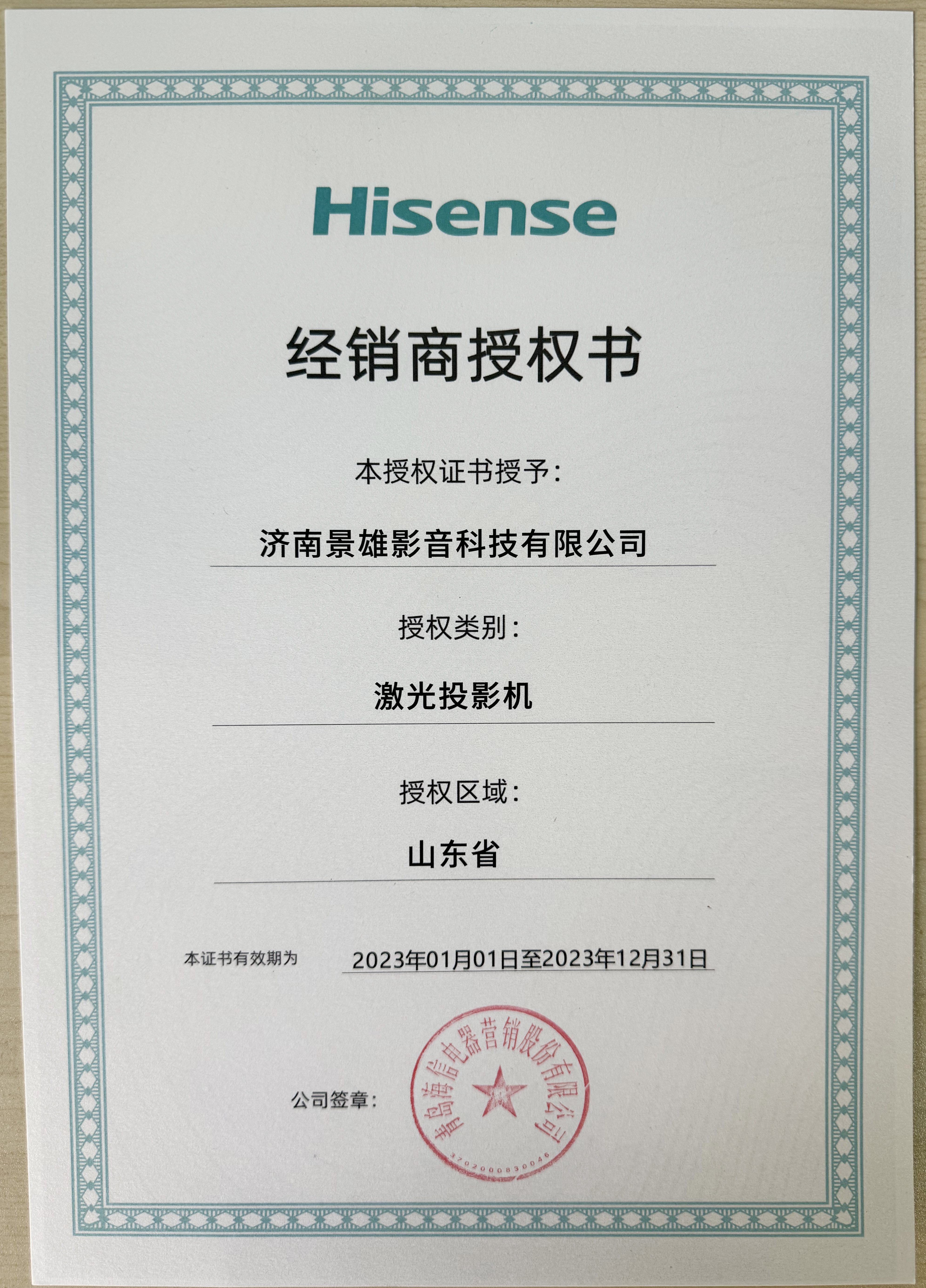 海信激光電視授權書